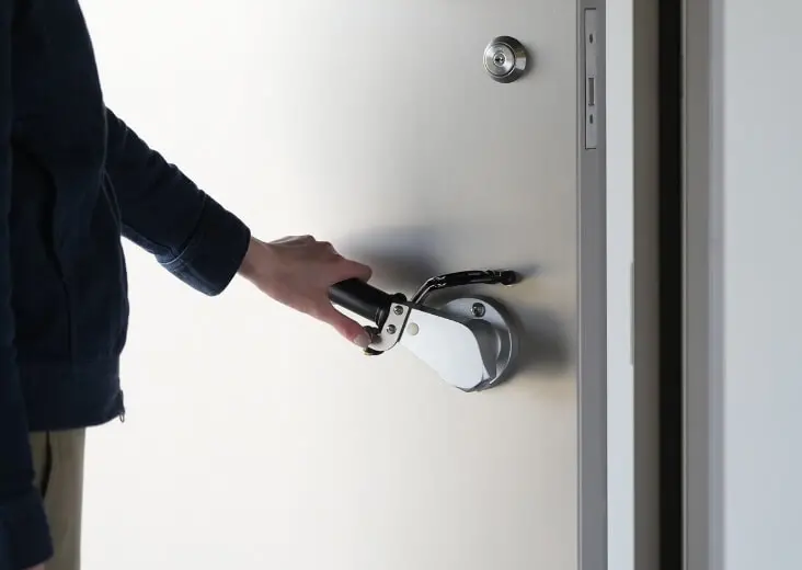 扉の解錠は、ボタンを押すだけ。自動でハンドルが上がり、重い扉の開錠動作をサポートします。医療現場で求められる迅速な動線をサポートします。